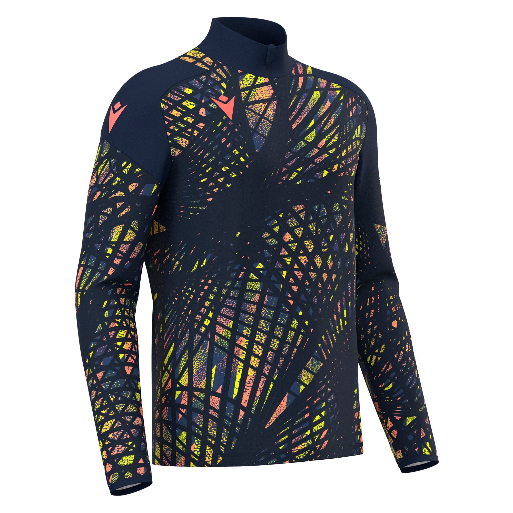 › 1/4 reverse zip with self-locking slider and snood › Contrasting micromesh triangular inserts › Bottom with drawstring adjustment › Thumb hole › Cuffs with Lycra trim › Main fabric chin guard